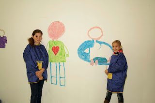 Op een muur van 28 meter lang mochten ze dit dan levensgroot schilderen. Alles was voorzien : verf, borstels, mengpotjes, schortje, drankje, hapje...
